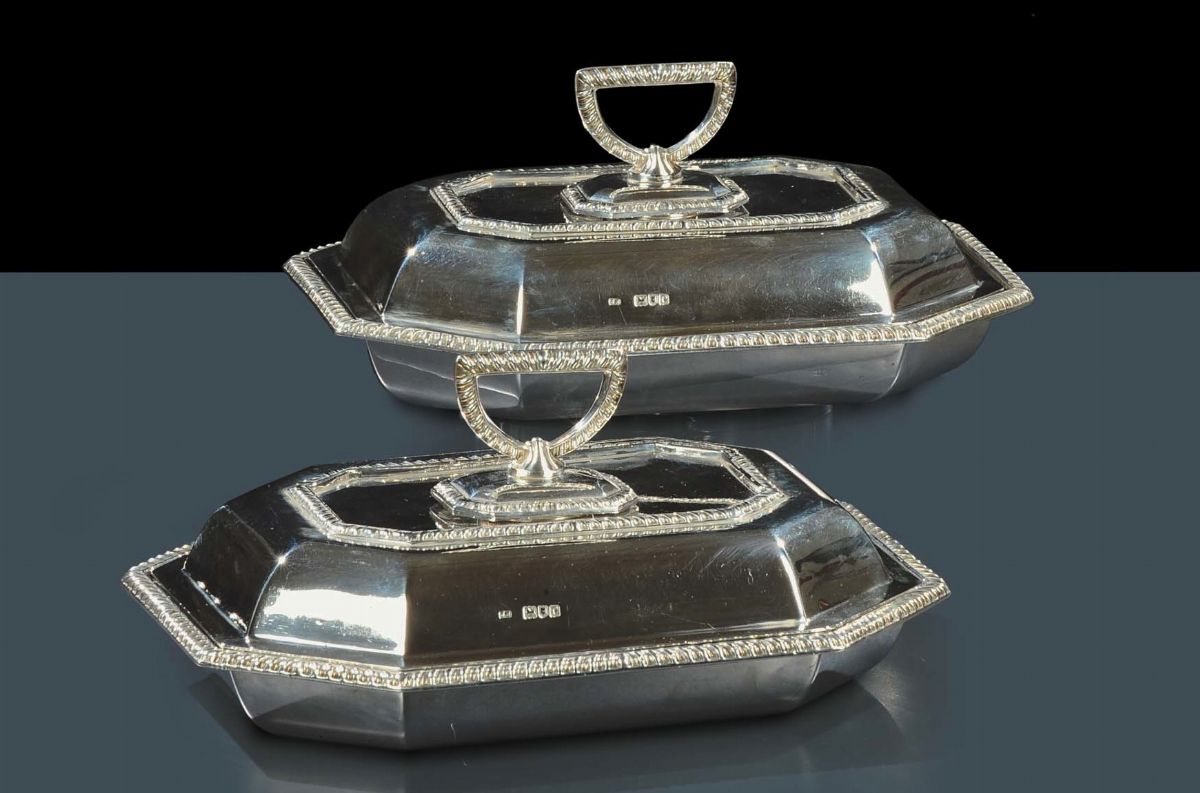 Coppia di legumiere ottagonali in argento, Londra 1898