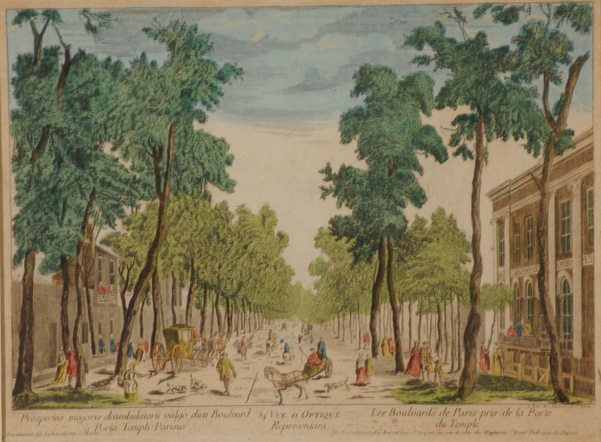 Coppia di stampe acquarellate, Francia, XIX secolo