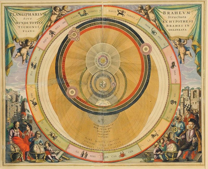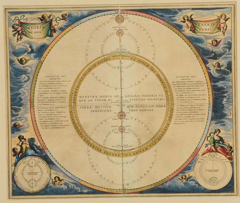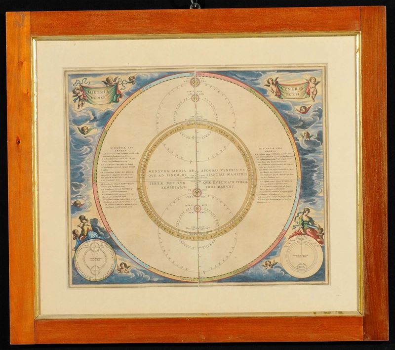 Coppia di stampe raffiguranti planisferi colorati, XVII secolo