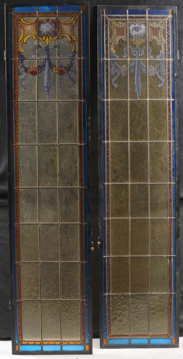 Coppia di vetrate con decoro di ghirlande, XX secolo