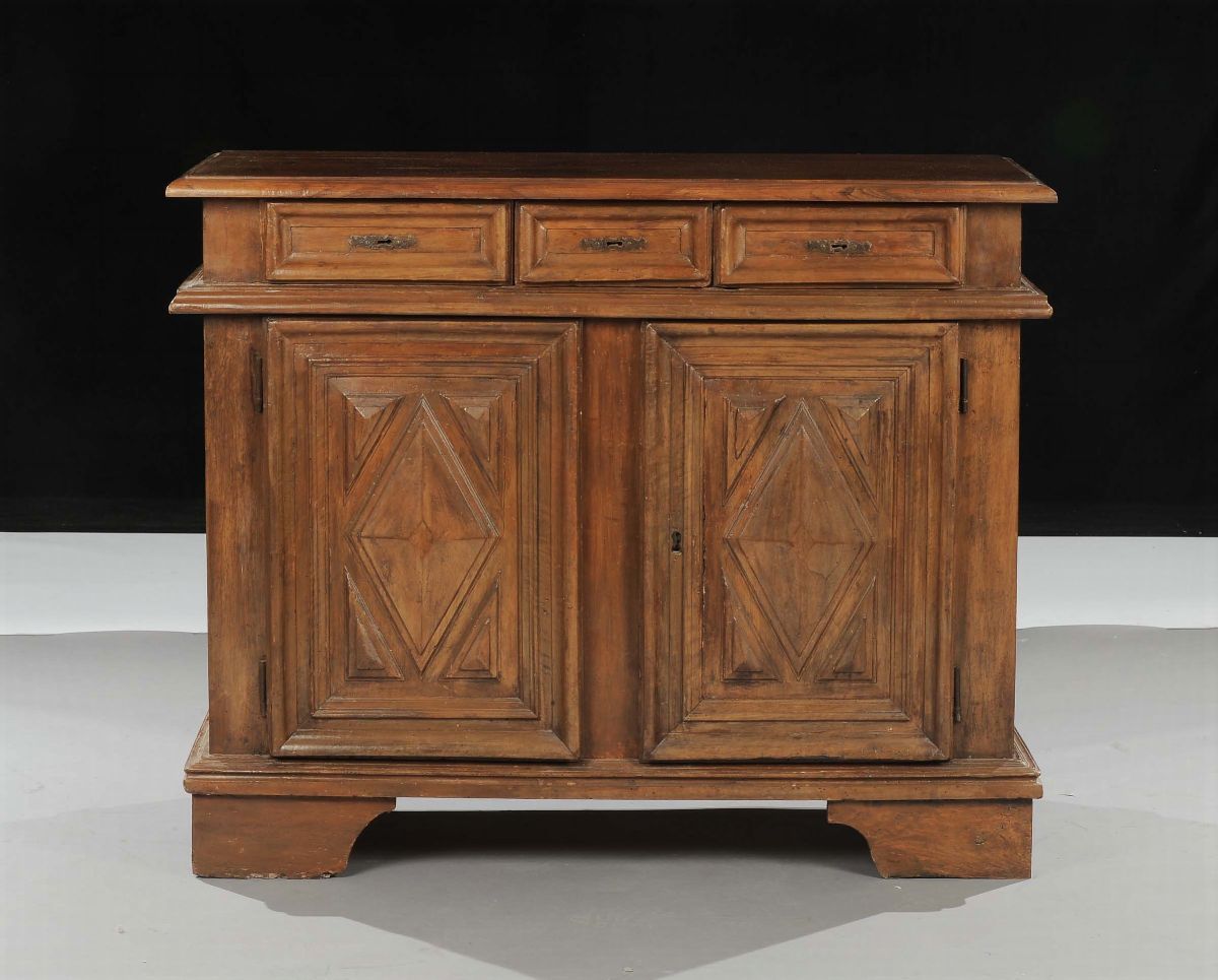 Credenza in noce a due ante pannellate, XIX secolo