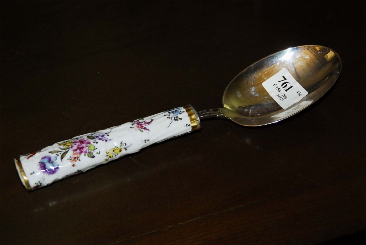 Cucchiaio in argento con manico in porcellana di Meissen, XX secolo