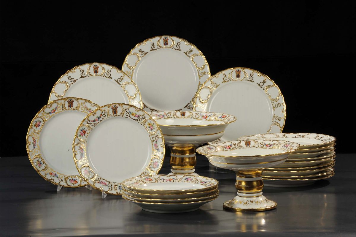 Diciotto piatti e due alzate in porcellana bianca, Franca XIX secolo