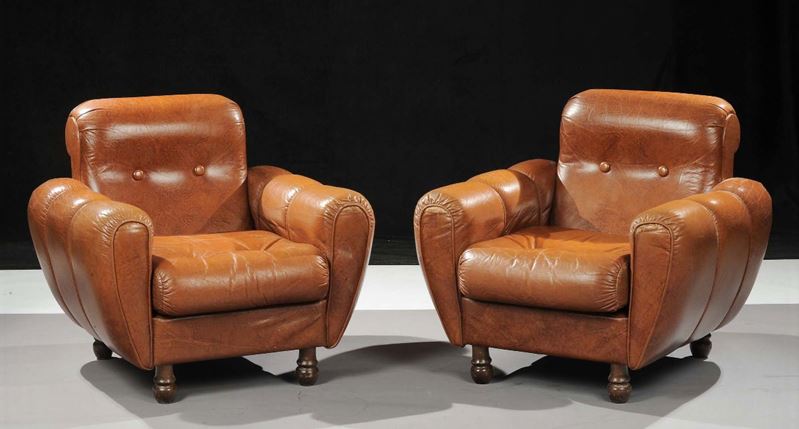 Divano a tre posti e due poltrone in pelle, XX secolo