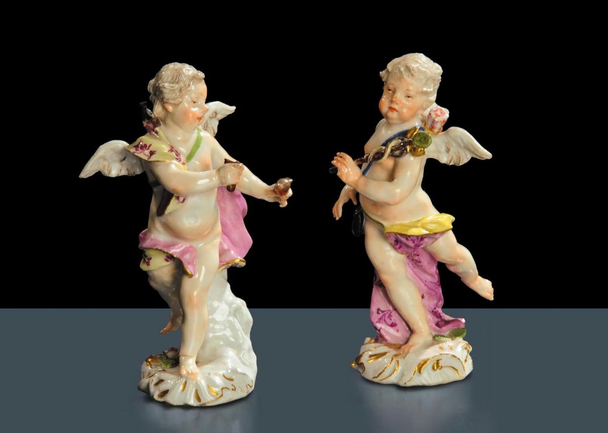 Due putti alati in porcellana, Meissen fine XVIII secolo