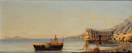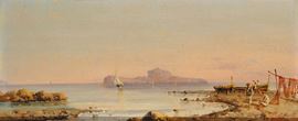 Gabriele Carelli (1820-1900) Veduta costiera con pescatoriVeduta costiera con pescatori