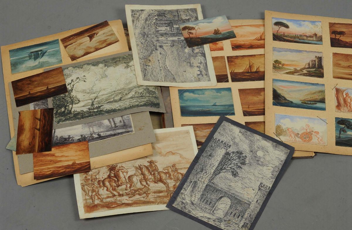Lotto composto da acquarelli su carta e cartoncino raffiguranti paesaggi