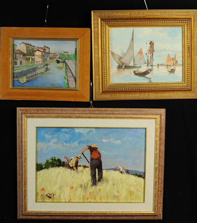 Lotto di tre dipinti ad olio