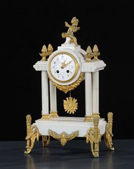 Orologio a portale in bronzo e marmo bianco, XIX secolo