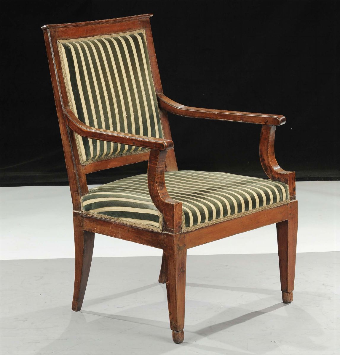 Poltrona in noce rivestita in velluto a righe, Italia centro settentrionale fine XVIII secolo
