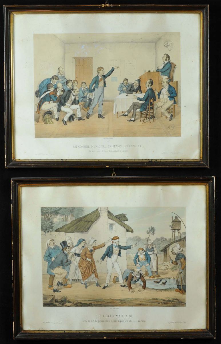 Quattro stampe con scene popolari, Francia XIX secolo