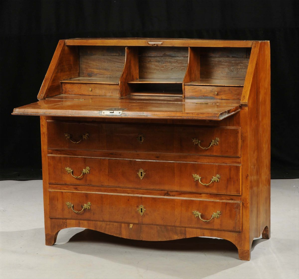 Ribalta Luigi XIV lastronata in noce a tre cassetti, XVIII secolo