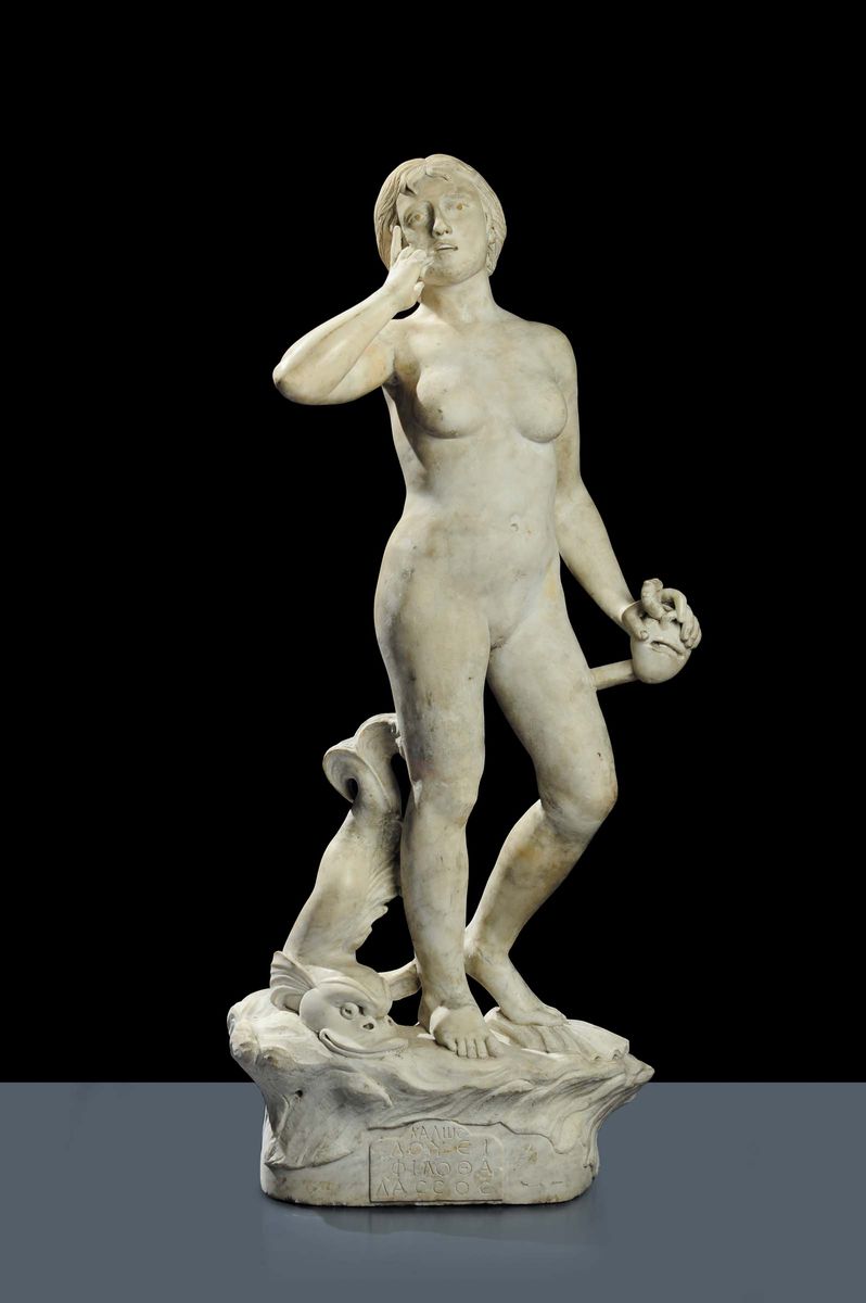 Scultura in marmo bianco rffigurante sirena, XIX secolo