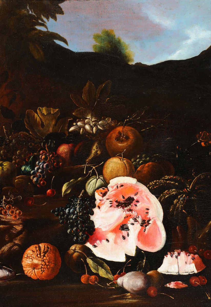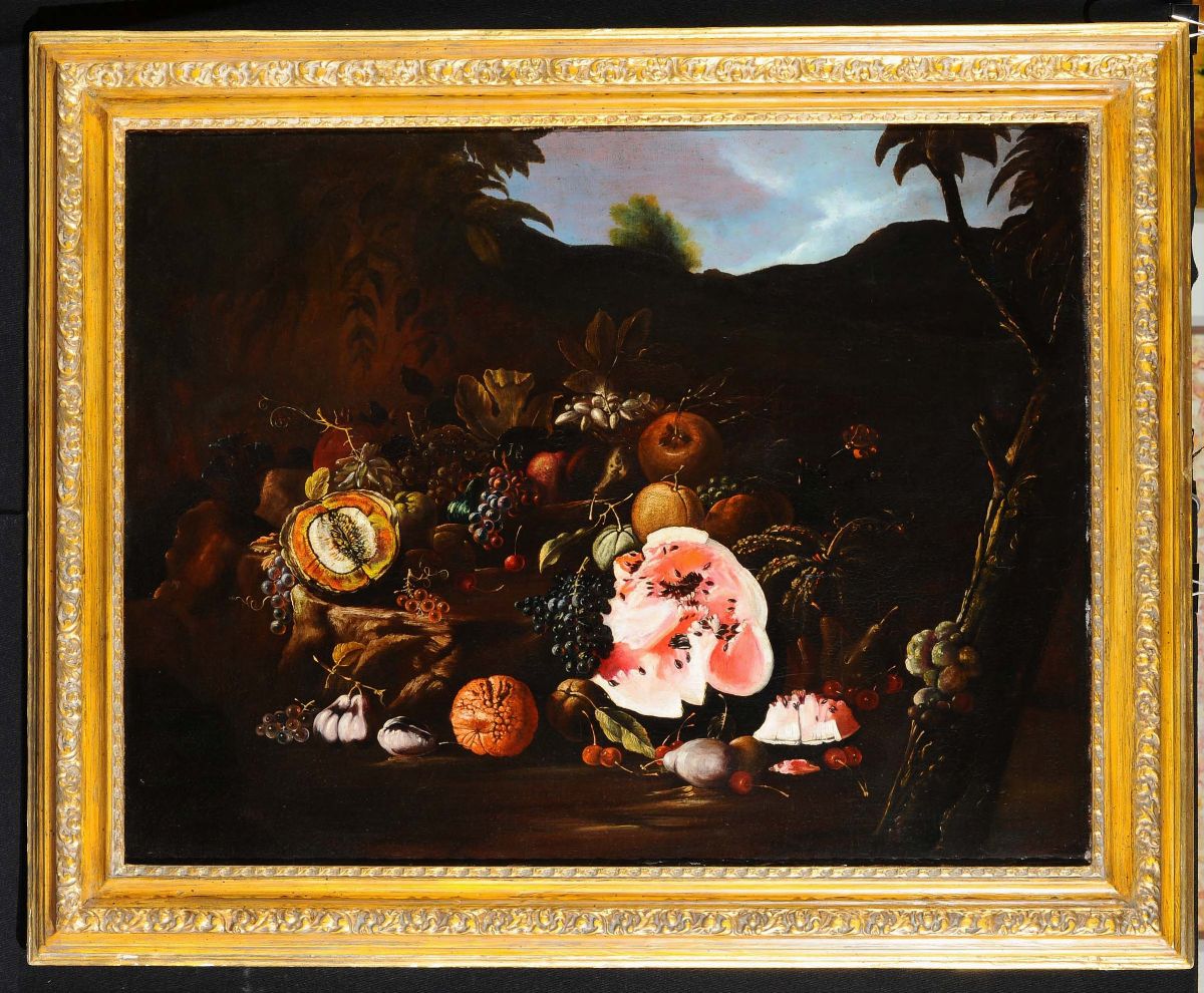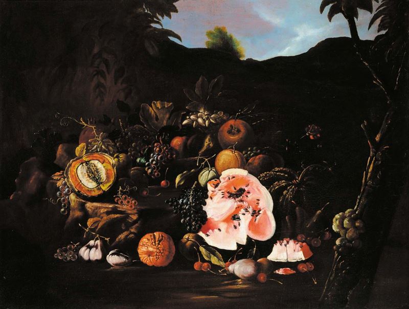Scuola del XVII secolo Natura morta con angurie e zucche