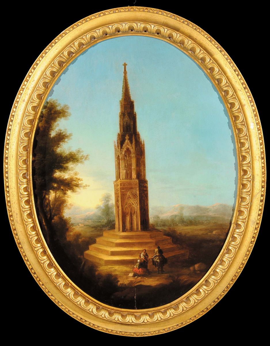Scuola del XVIII secolo Paesaggio con architetturaPaesaggio con architettura