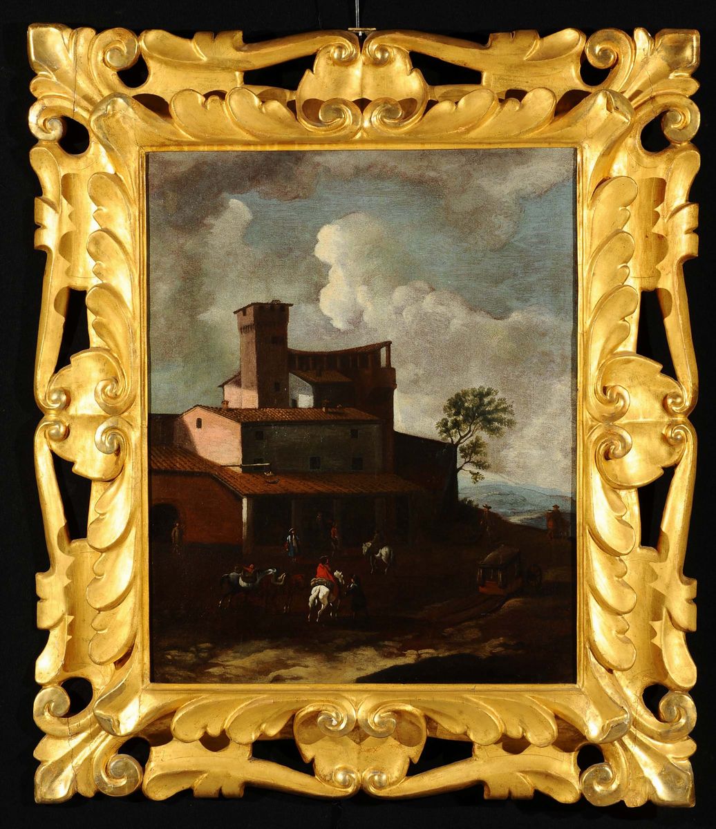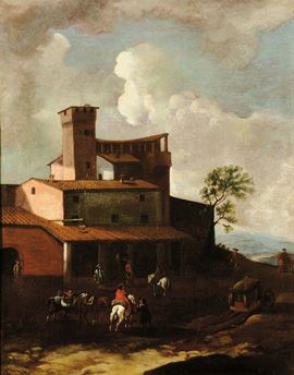 Scuola Italiana del XVII secolo Paesaggio con viandanti