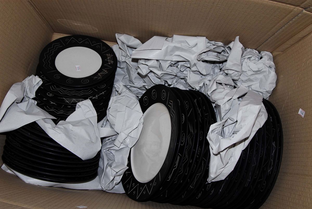 Servizio di piatti in ceramica bianca e nera, XX secolo