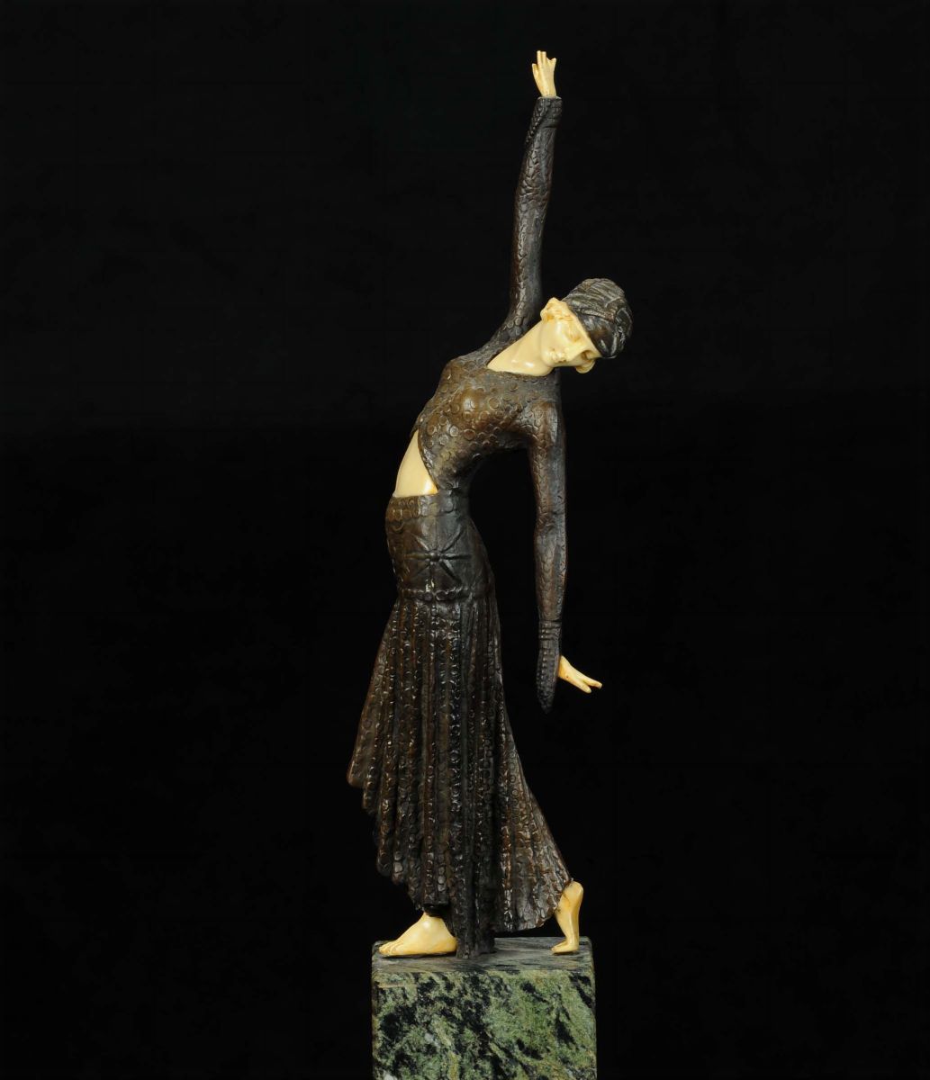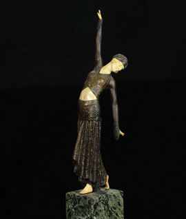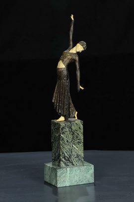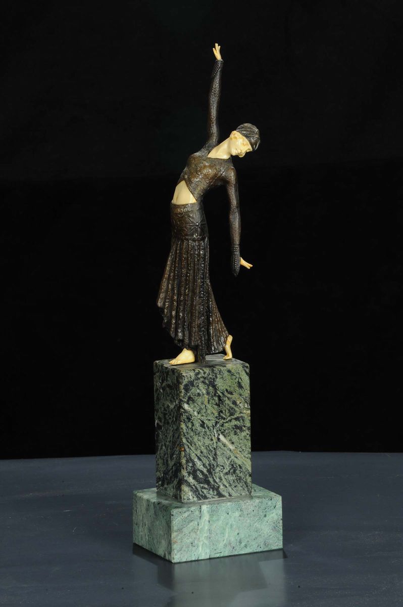 Statuina raffigurante figura femminile su base in marmo