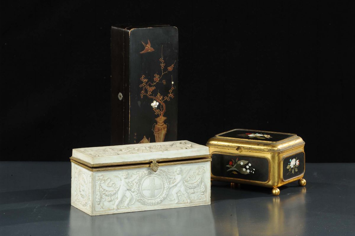 Tre cofanetti in marteiali differenti di cui uno Aberto Issel Genova