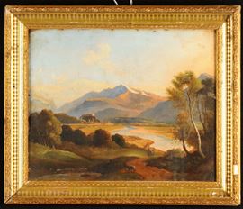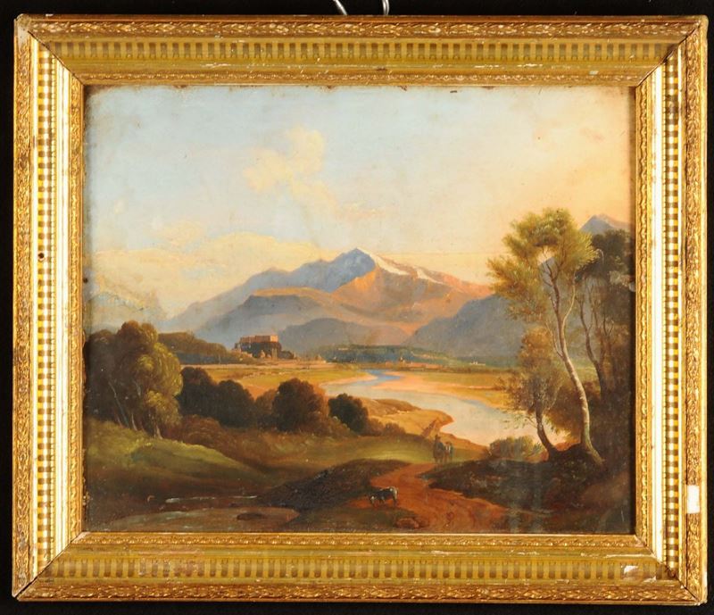 Anonimo Francese del XIX secolo Paesaggio con armenti e figure