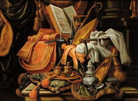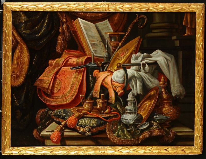 Antonio Tibaldi (Roma 1635-1675 ca.) Natura morta con paramenti episcopali