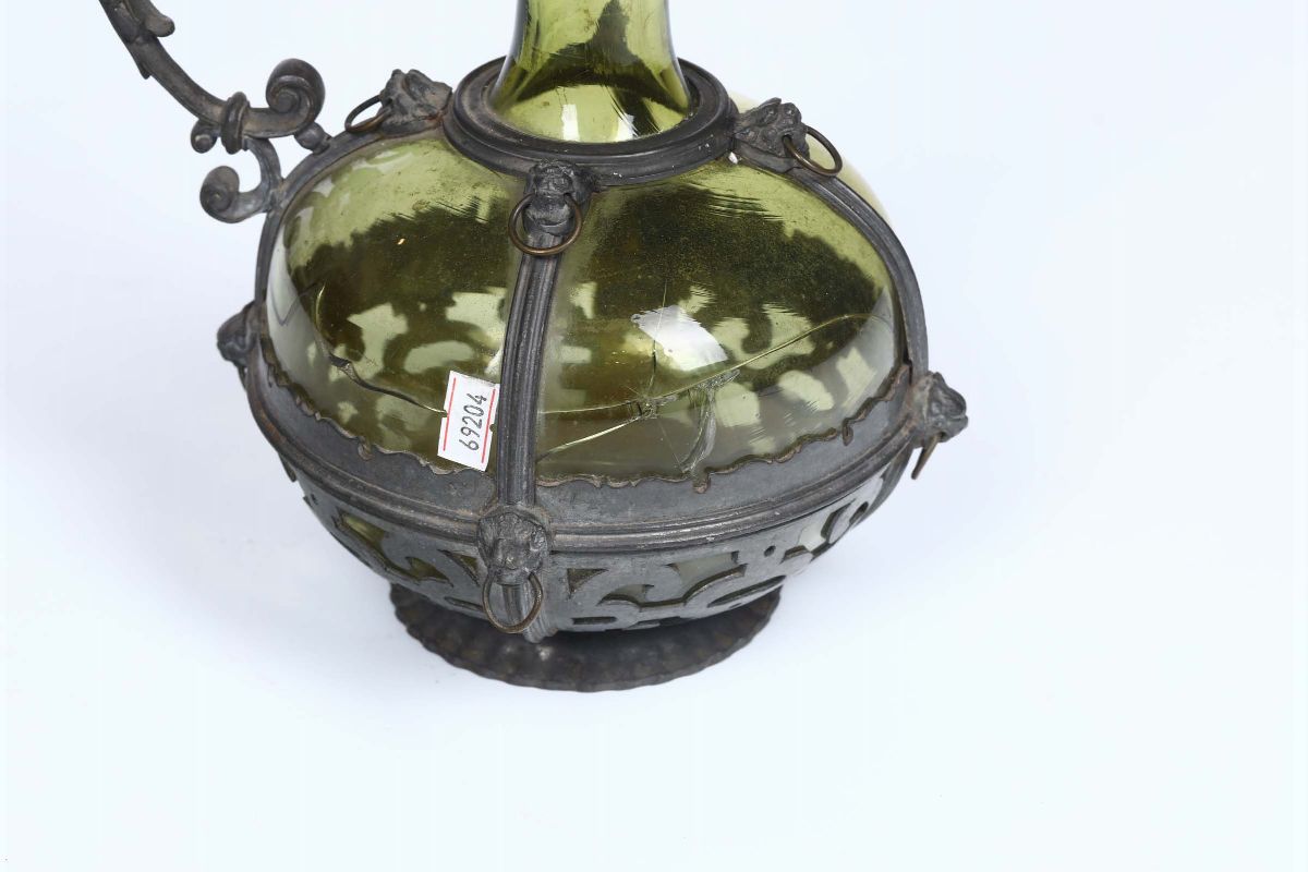 Bottiglia in vetro con montatura in peltro