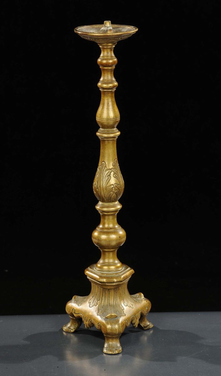 Candeliere in bronzo dorato,Toscana XVII secolo
