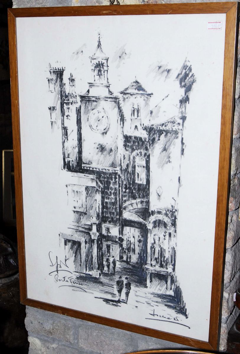 Carboncino in cornice raffigurante Porta Ferrea - Split