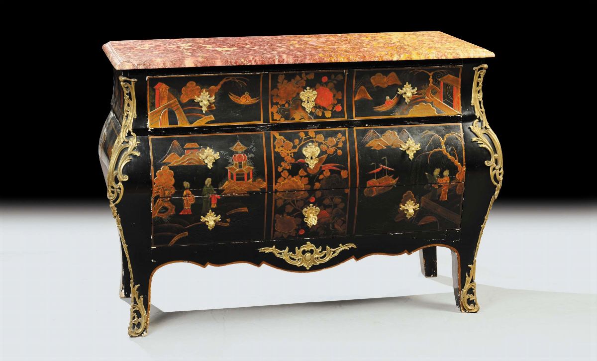 Com˜ a tre cassetti laccato a cineserie, Francia XIX secolo