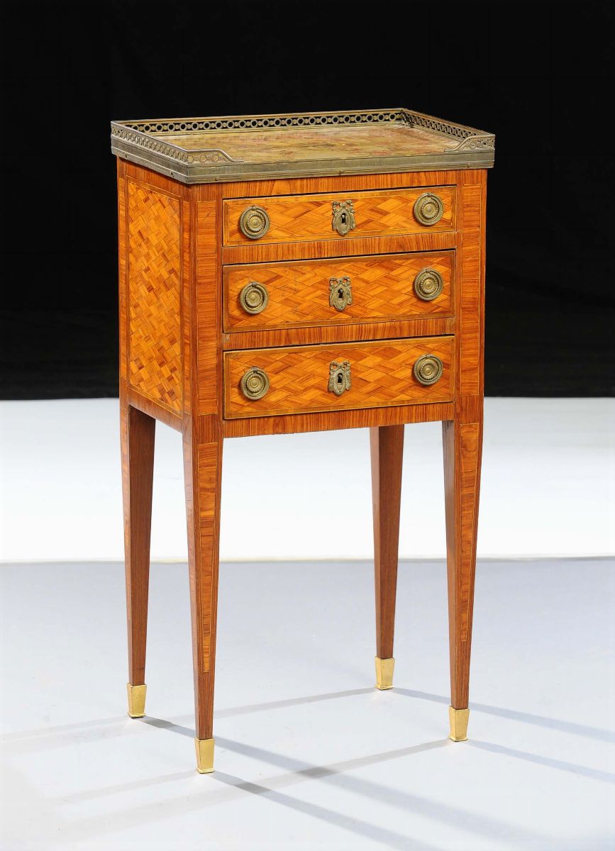 Comodino Napoleone III in stile Luigi XVI lastronato, XIX secolo
