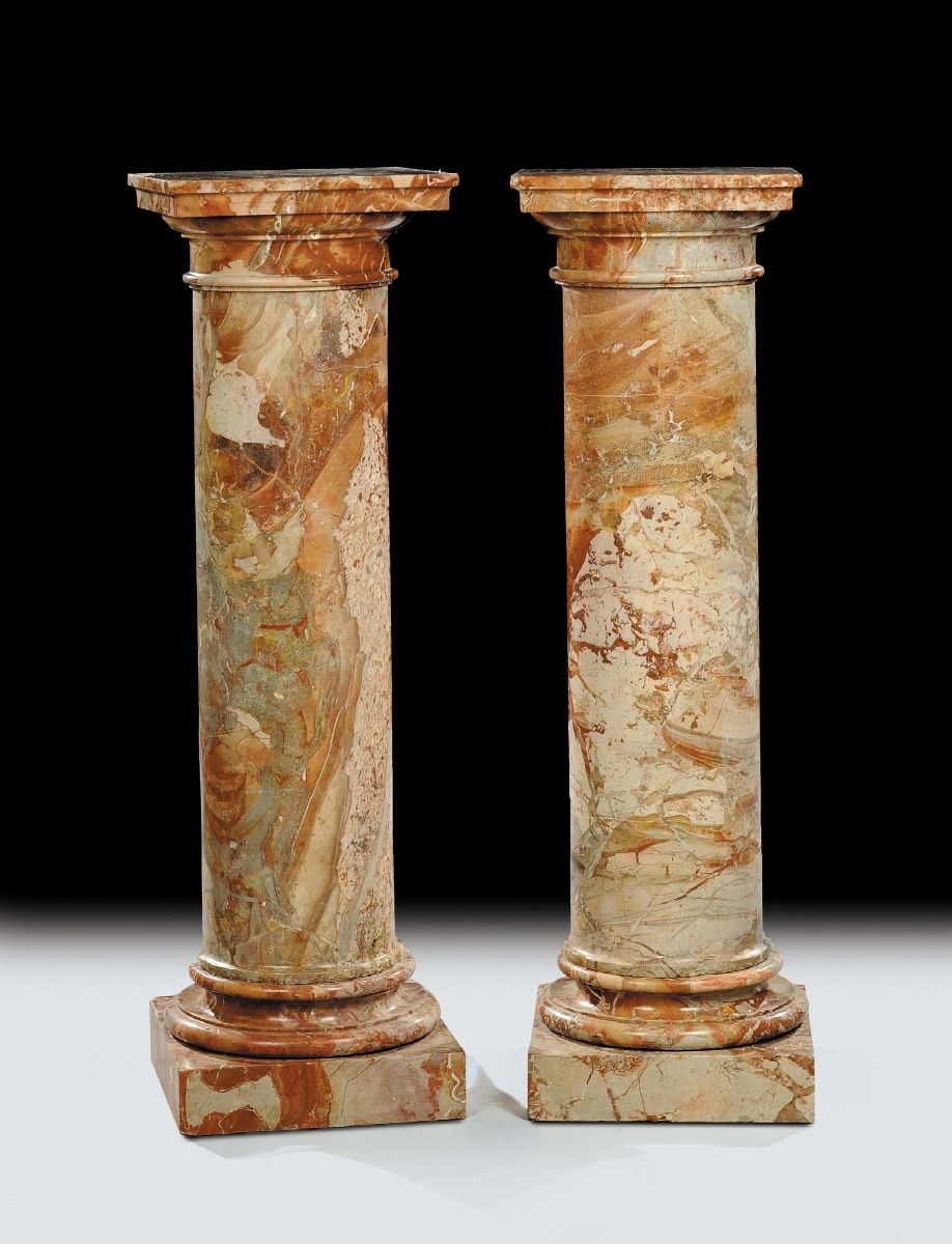 Coppia di colonne in marmo rosso con capitelli, XIX secolo