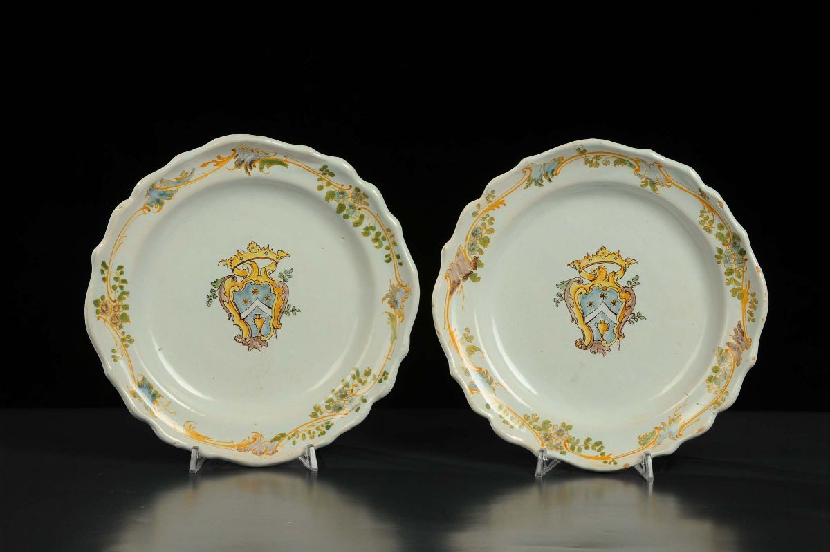 Coppia di piatti in maiolica, Caserta XVIII-XIX secolo