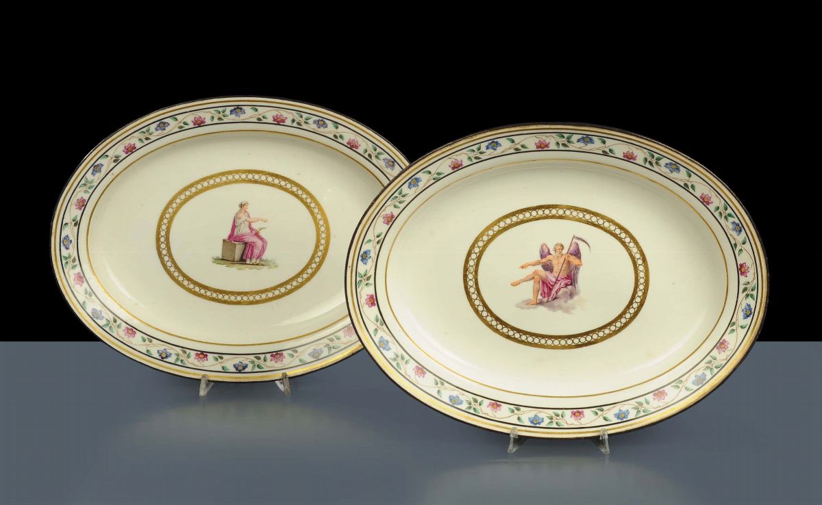 Coppia di piatti ovali in porcellana Ferdinando IV, Napoli XIX secolo