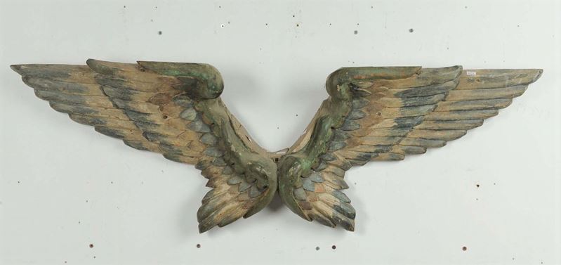 Coppia di sculture in legno raffiguranti ali, Genova XVII secolo