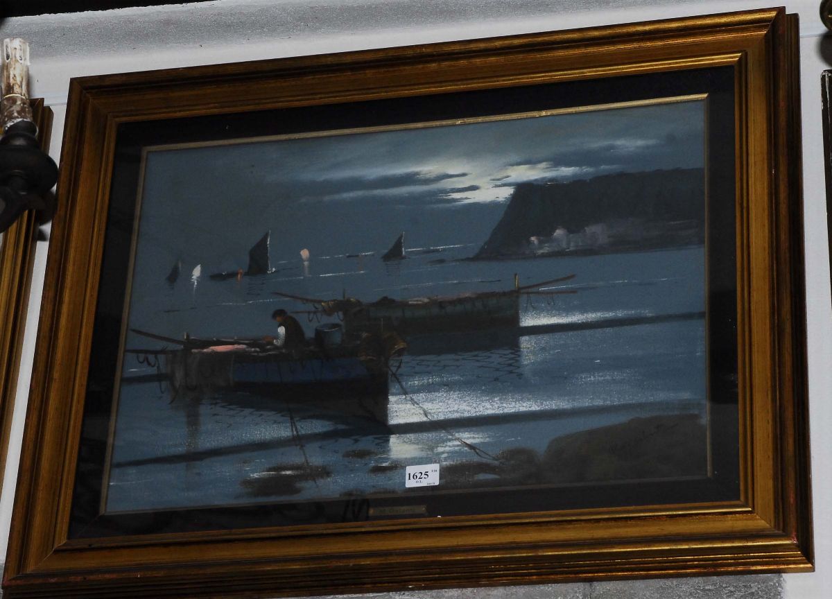 Dipinto di Mario Galanto raffigurante barche con pescatori