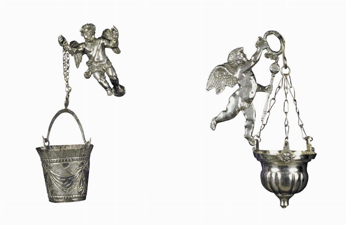 Due putti in argento con secchiello, Italia XVIII-XIX secolo
