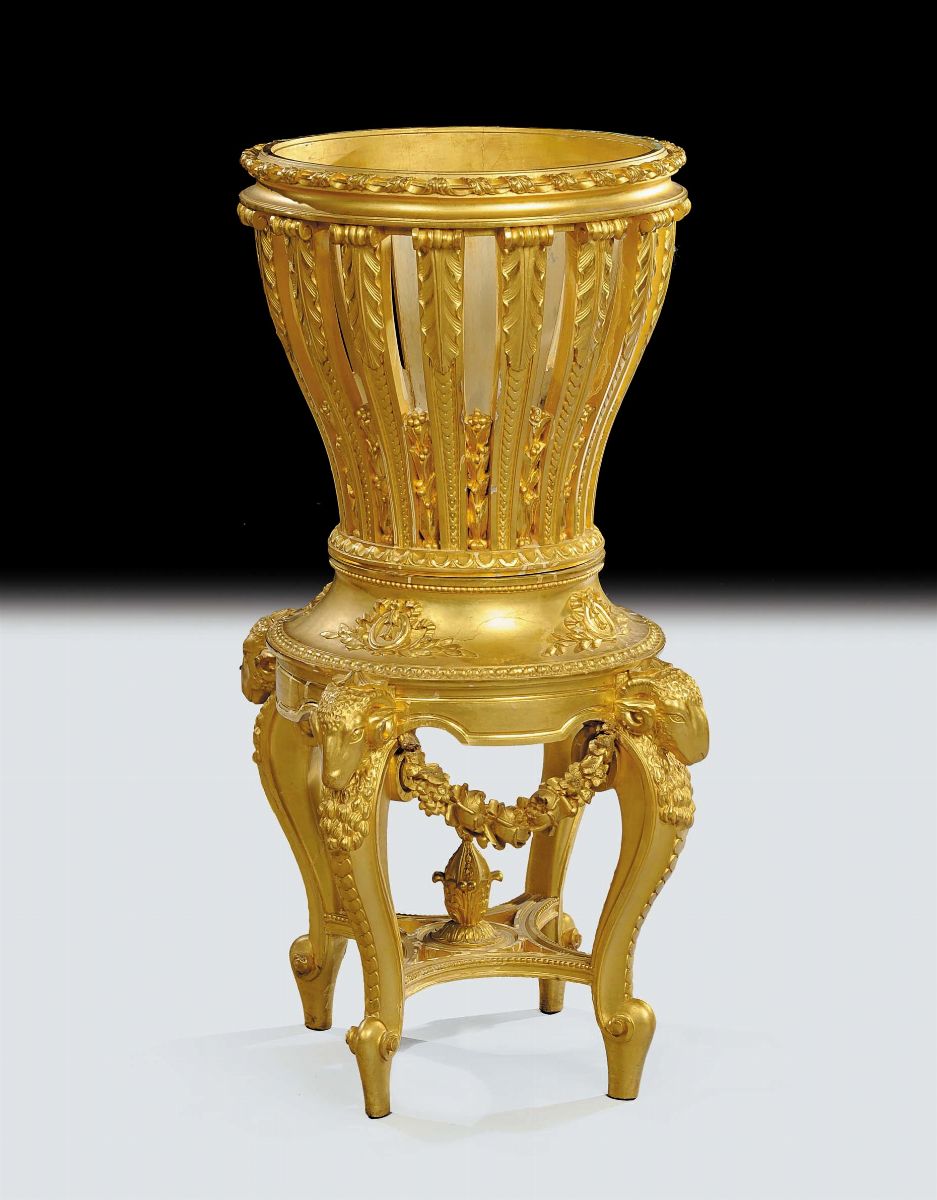 Fioriera in legno intagliato e dorato, XIX secolo