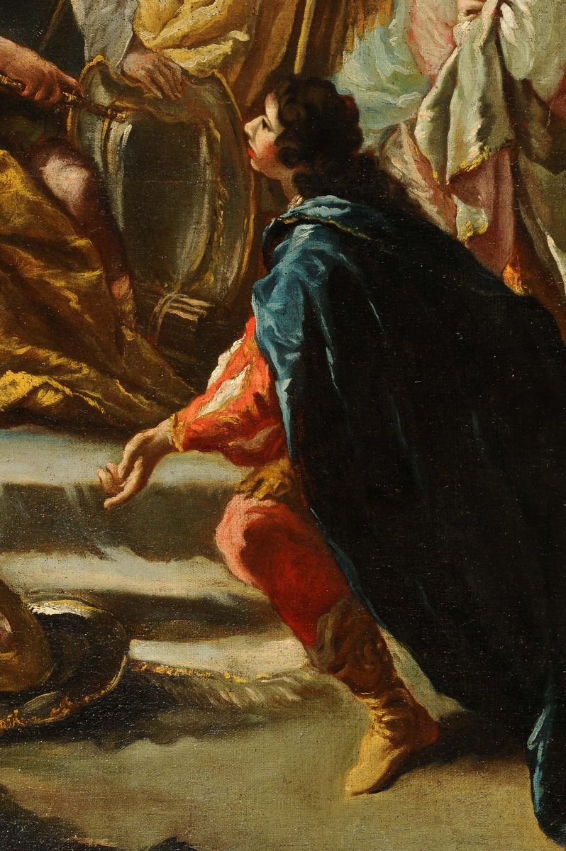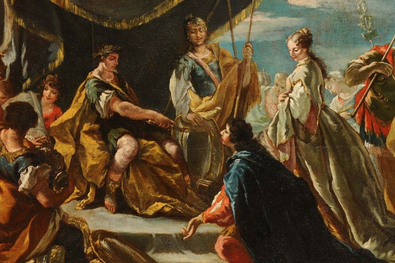 Il dipinto, proveniente da una collezione privata inglese, viene acquistato negli anni cinquanta dal celebre marchand-amateur Francesco Pospisil, che dal 1936 si era trasferito nel magnifico palazzo Sagredo sul Canal Grande a Venezia e aveva l“ la sua collezione.Il dipinto che qui presentiamo in origine poteva far parte di un pendant, come il caso dei due dipinti di analogo soggetto provenienti dal palazzo Savorgnan di Brazzˆ di Udine e poi in collezione Cella a Broni, che raffigurano appunto Il Trionfo di Scipione e La clemenza di Scipione.La composizione dilatata in senso orizzontale, soluzione differente rispetto al dipinto di analogo soggetto di una delle quattro tele con episodi di storia romana scoperte da Sinding-Larsen nel 1959, nel cosiddetto giardino dÕinverno della villa di Bogstad, presso Oslo, databili alla metˆ degli anni cinquanta del Settecento e considerate tra i pi alti raggiungimenti dellÕartista. La stessa soluzione di questÕopera viene invece adottata in unÕaltra replica presente nella collezione Cella di Broni, che mostra per˜ notevoli varianti e una stesura pittorica pi semplificata, tanto da poterla ritenere una seconda versione. Per quanto riguarda la cronologia dovrebbe essere datata verso la metˆ degli anni quaranta, in un momento cio precedente al ciclo di Bogdstad, che presenta una materia pittorica meno corposa e pi sfrangiata.