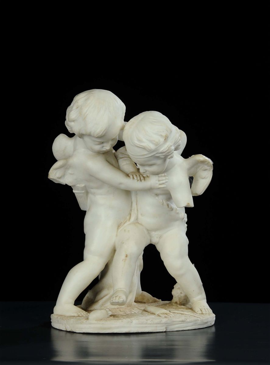 Gruppo in marmo bianco rafigurante angioletti, XIX secolo