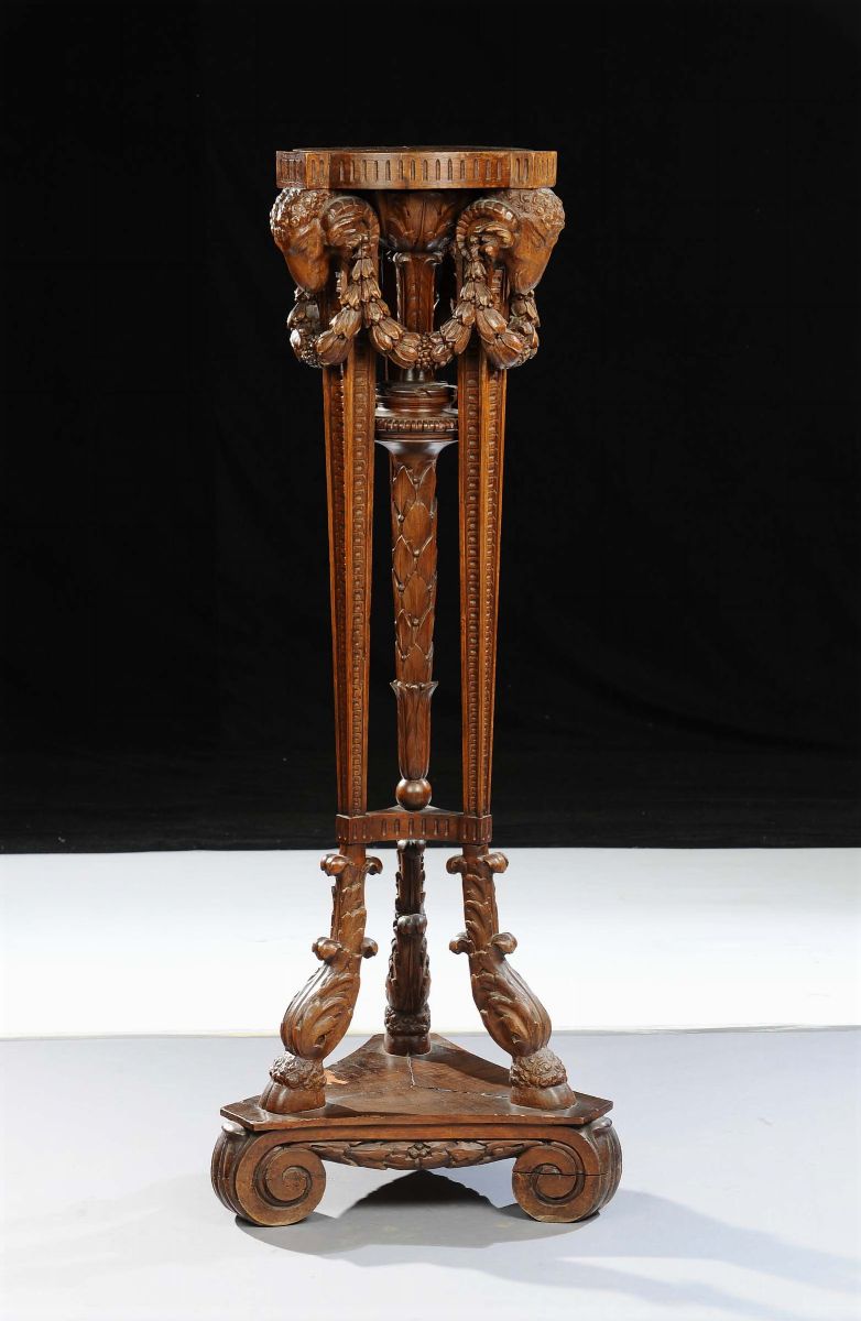 teste di caproni sulla sommitˆ dei montanti troncopiramidali terminanti con piede caprino, altezza cm 123