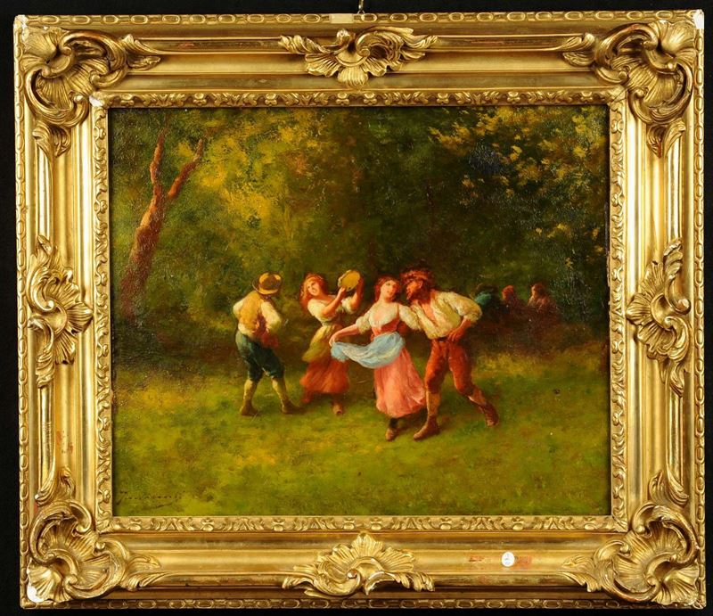 Guglielmo Innocenti (1871-1961) Scena campestre con danzatori di tarantella