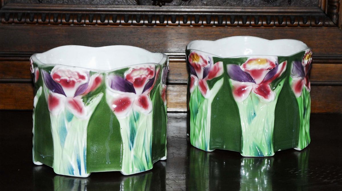 coppia di portavasi con fiori