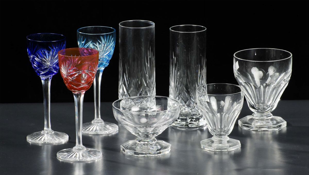 Lotto di bicchieri in vetro inciso e non
