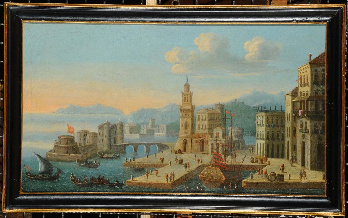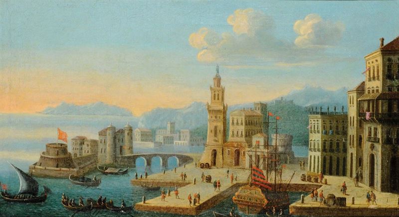 Orazio Grevenbroeck (1670-1743), cerchia di Veduta fantastica di cittˆ portuale