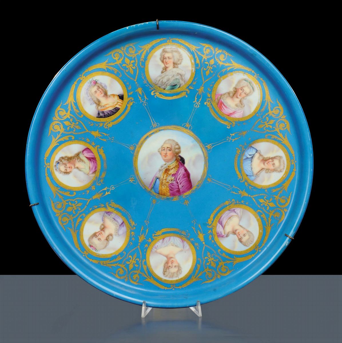 decoro policromo raffigurante Luigi XVI con le sue concubine, diametro cm 48