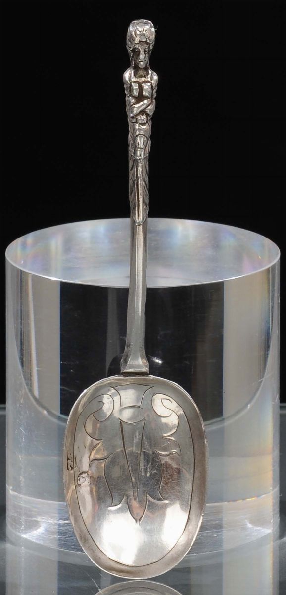 Piccolo cucchiaio in argento fuso, sbalzato e cesellato, Venezia inizi XVIII secolo