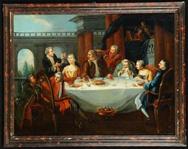 Banchetto con personaggiScena con personaggi e architetture
