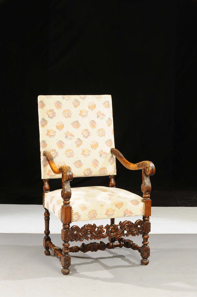 Poltrona in noce intagliata, XX secolo
