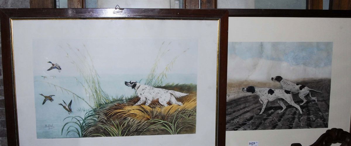 Quattro litografie con scene di caccia