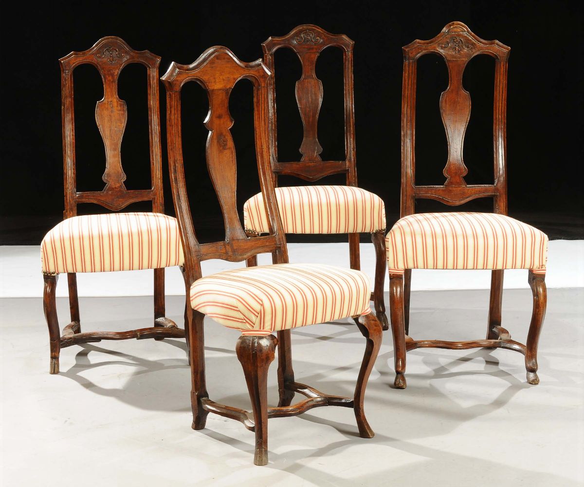 Quattro seggioline Luigi XV con schienale a cartella, XVIII secolo